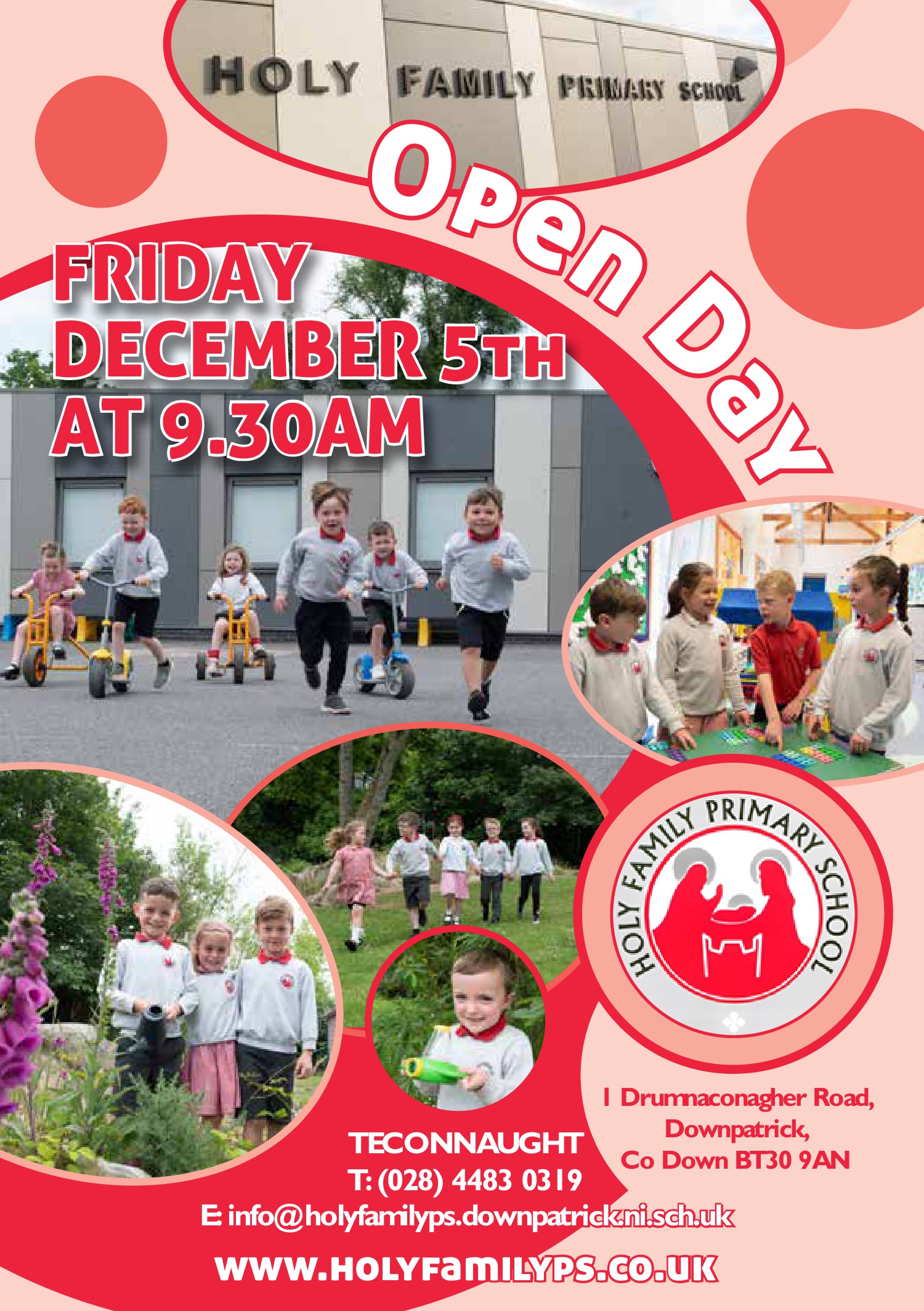 Holy Family Primary School,1 Drumnaconagher Road. Downpatrick, County Down, BT30 9AN Telephone: 02844830319